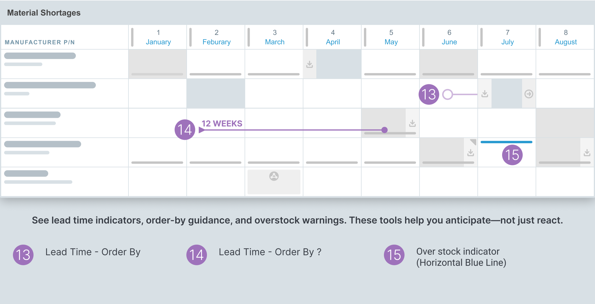 Aligni’s Material Shortage Report turns inventory gaps into actionable insight—so you can prioritize, purchase, and produce with confidence.